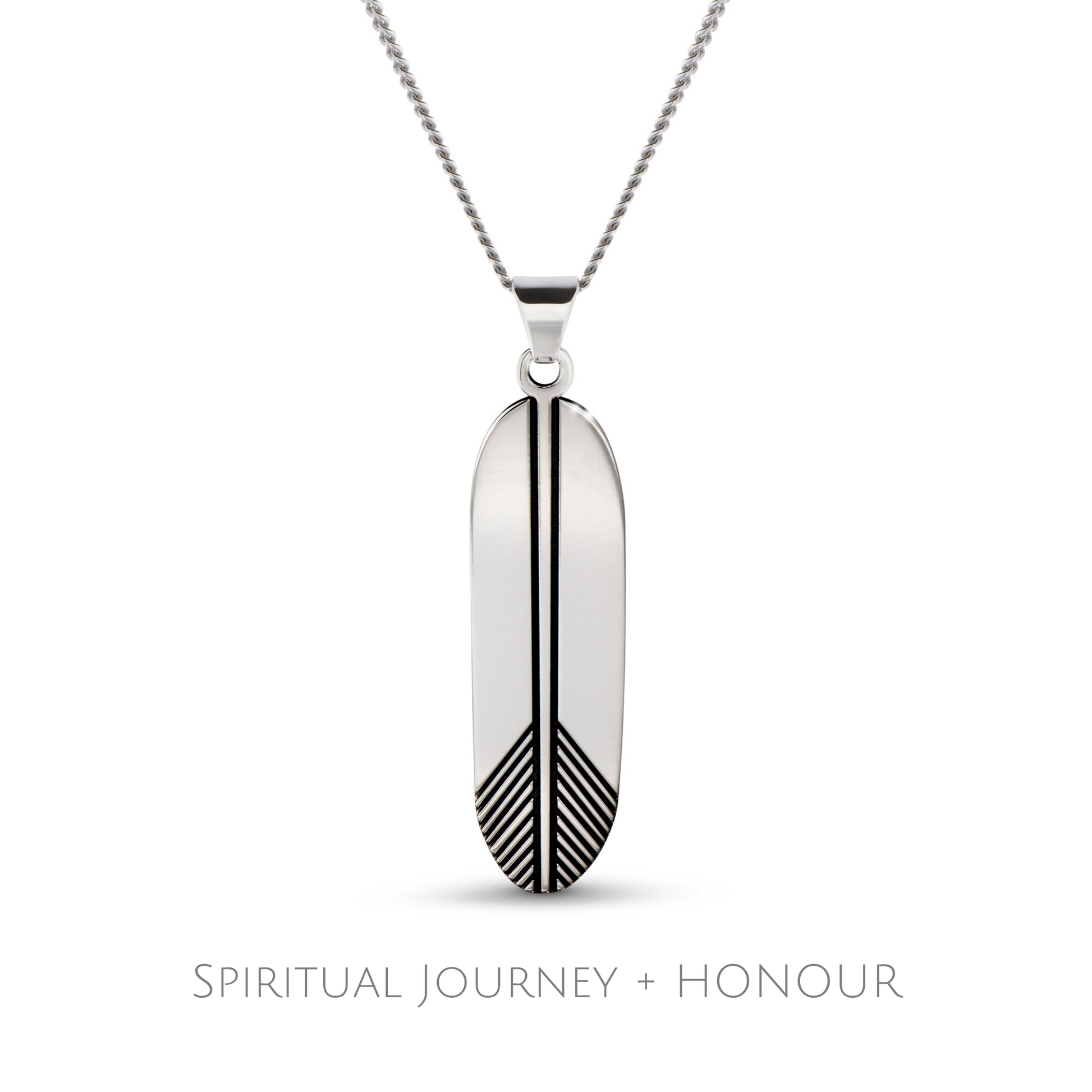 SILVER FEATHER NECKLACE Spiritual Journey + Honour